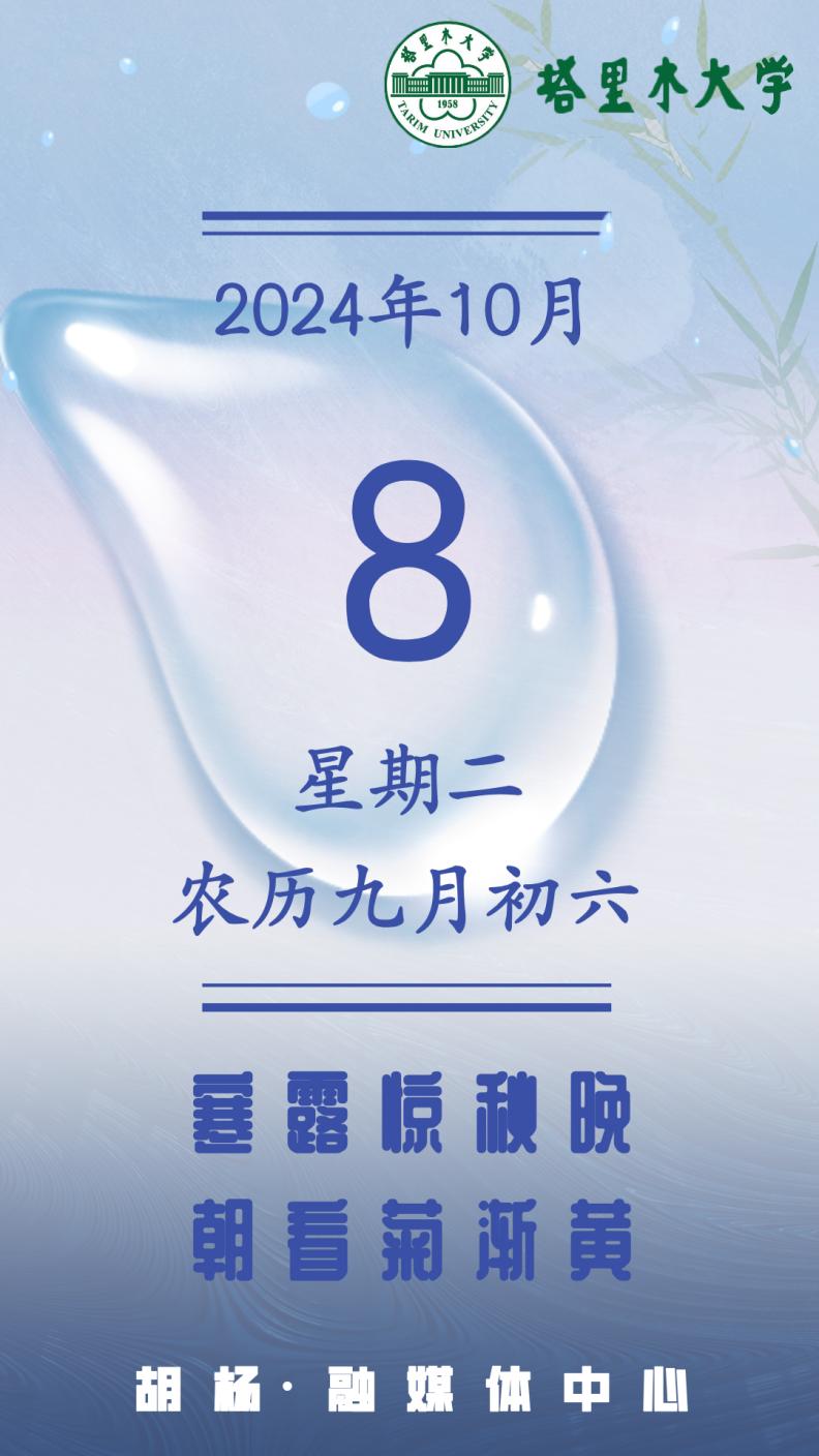 寒露是一个反映气候变化特征的节气,寒露节气后,热气慢慢退去,寒气渐生,晨晚略感丝丝寒意。常言道“白露身不露,寒露脚不露”。因此,各位小胡杨们,在寒露时节,更要注意保暖,及时增添衣物,特别是要保护好脚部,避免受寒,备好预防感冒的药物,减少疾病发生。(文/图片制作 李诗宇)