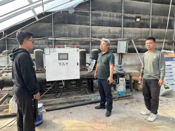 在设施大棚现场,团队成员查看辣椒、番茄等蔬菜长势,在了解前期定植后灌溉、施肥等管理措施后,就田间管理提出指导性意见,手把手教授水肥一体化装置安装调试、水肥科学化配比。