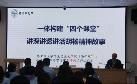 秦泽洪以“一体化构建‘四个课堂’ 讲深讲透讲活胡杨故事”为题作主题报告,从胡杨精神的内涵、塔里木大学与胡杨精神、如何借助“四个课堂”讲深讲透讲活胡杨故事三个方面进行详细阐述。希望双方能够保持密切沟通交流,共享、共创、共申教学成果,真正把思政课一体化建设工作落到实处。