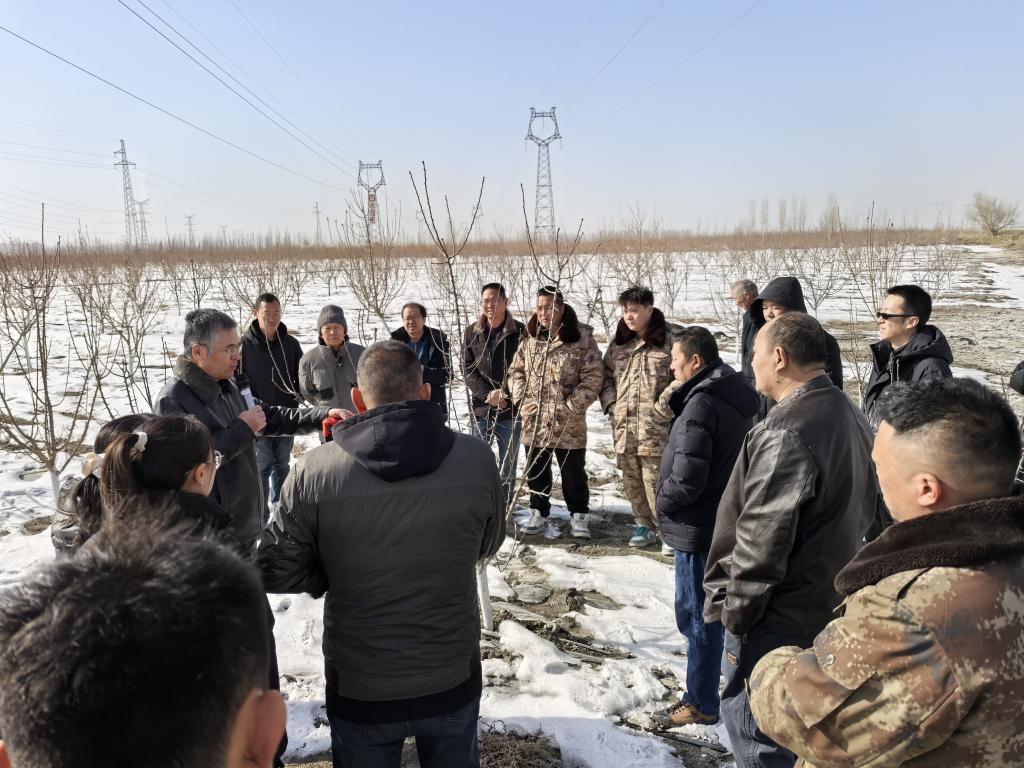 团队走进果园,针对吊干杏、苹果、杏李、西梅果树进行“手把手”教学培训,技术传授覆盖连队和结对村“两委”、特聘农技员、果园职工70余人。