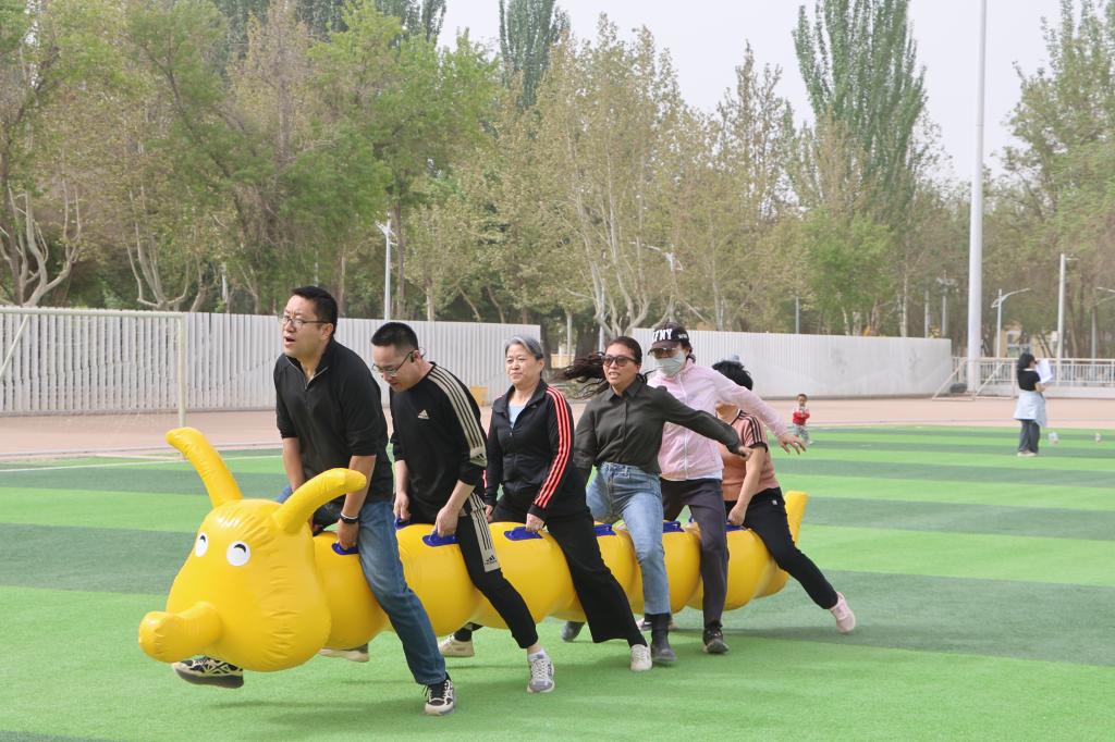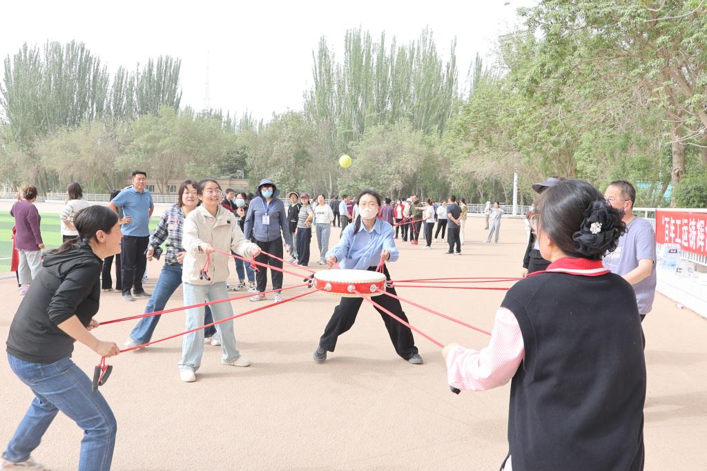 运动会设置了“同舟共济”“一圈到底”“龟兔赛跑”“鼓动人心”“动力火车”5个项目,集趣味性、协作性和竞技性于一体。比赛现场,教职工们热情高涨,配合默契,场上奋勇争先,场下欢呼鼓劲,加油声、呐喊声、欢笑声此起彼伏,展现了教职工们积极向上的精神风貌。