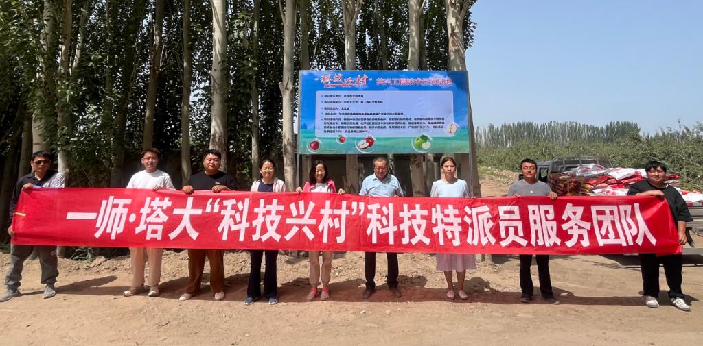 近日,我校园艺与林学学院王江波副教授、机械电气化工程学院刘媛杰教授带领一师・塔大“科技兴村”科技特派员服务团队,深入阿克苏温宿县“科技兴村共兴工程”苹果栽培技术示范基地开展科技服务。