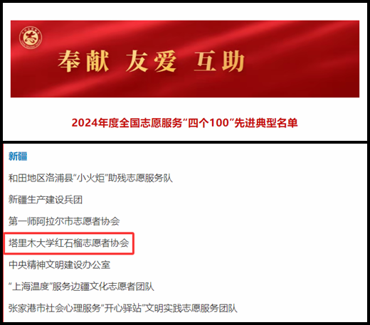 近日,2024年度全国志愿服务“四个100”先进典型名单公布。最终,共推选出100名最美志愿者、100个最佳志愿服务组织、100个最佳志愿服务项目和100个最美志愿服务村(社区)。我校园艺与林学学院红石榴志愿者协会入选最佳志愿服务组织。