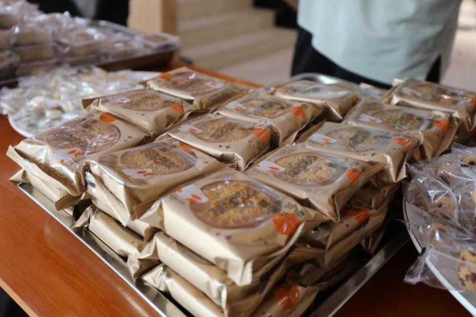 同学们捧着餐食