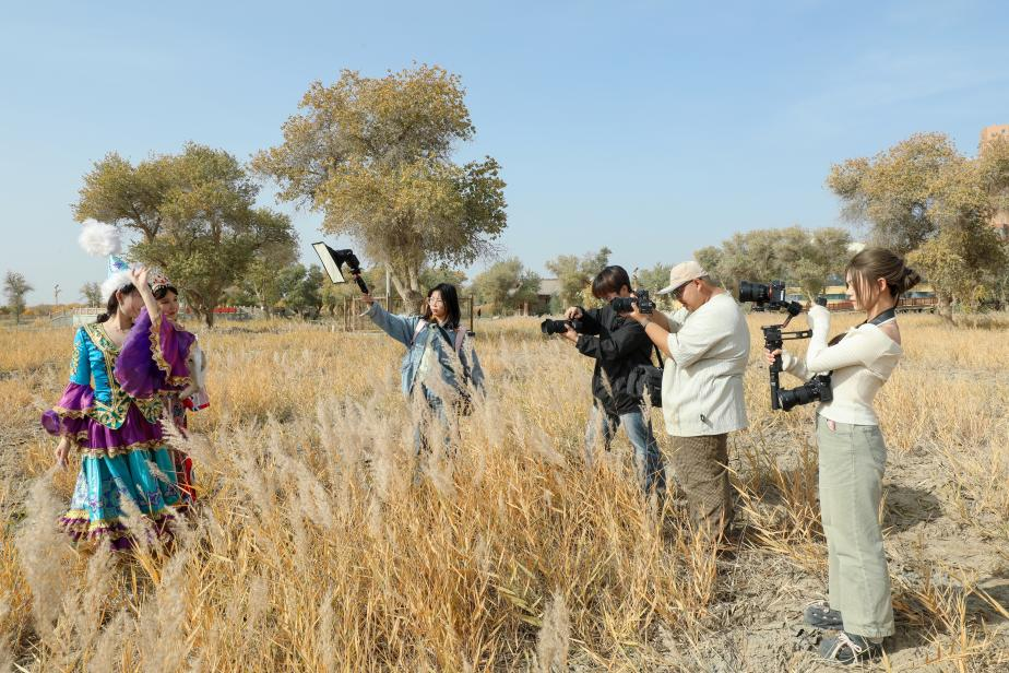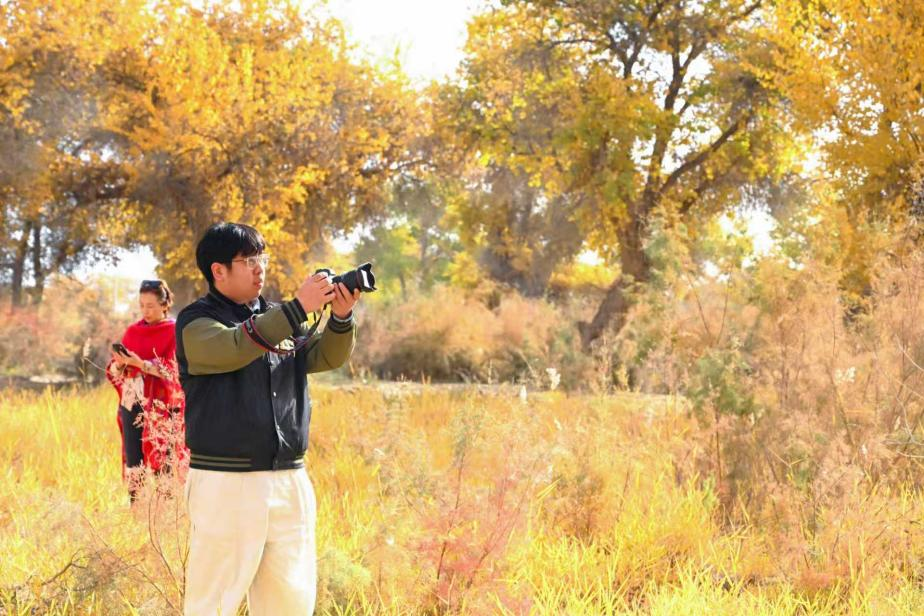 摄影家协会捕捉光影,相机镜头定格出金色胡杨的壮美景色。