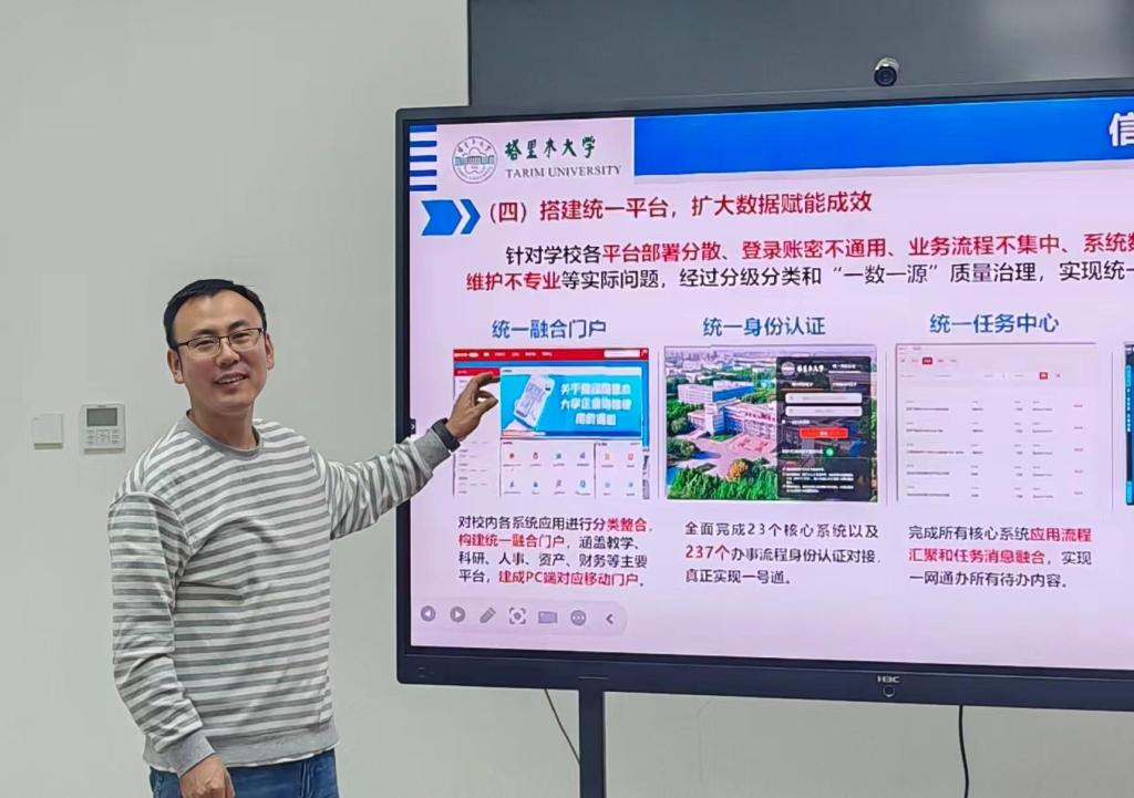 在塔大,他主要负责学校信息化建设相关工作。为了让信息化服务真正贴合师生需求,他与团队成员投入大量精力开展需求调研,紧密将部门业务和师生需求结合起来,让信息化服务真正落地见效、便利师生。