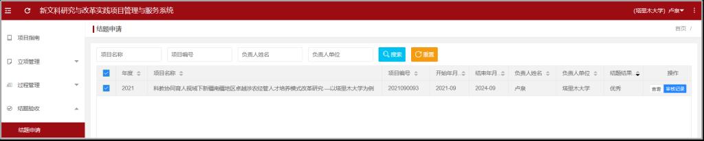 近日,教育部办公厅印发《关于公布新文科研究与改革实践项目结题验收结果的通知》(教高厅函〔2026〕2号),我校卢泉教授主持的首批国家级新文科研究与改革实践项目《科教协同育人视域下新疆南疆地区卓越涉农经管人才培养模式改革研究—以塔里木大学为例》顺利通过结题验收并获评“优秀”。