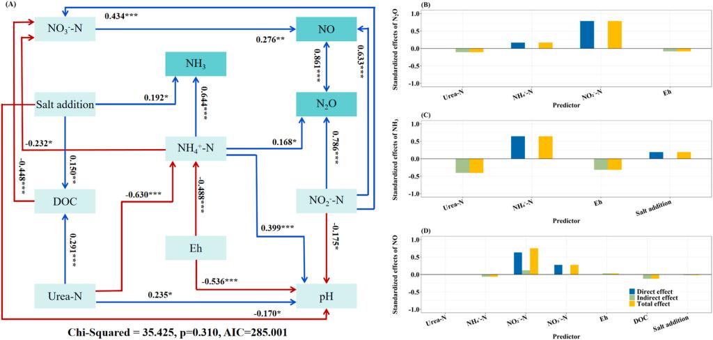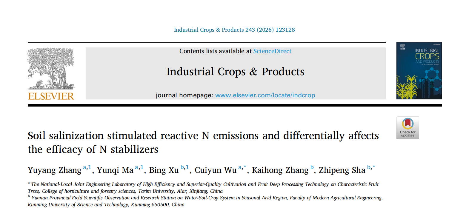 近日,我校园艺与林学学院吴翠云教授团队在《Industrial Crops & Products》(一区Top,影响因子6.2)发表题为“Soil salinization stimulated reactive N emissions and differentially affects the efficacy of N stabilizers”的研究论文。园艺与林学学院张宇阳副教授、硕士研究生马昀祁为共同第一作者,园艺与林学学院吴翠云教授为通讯作者,昆明理工大学沙志鹏共同参与该项研究。该研究分别得到兵团重点科技攻关项目、兵团自然科学基金面上项目支持。