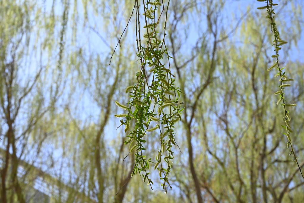 柳条在春风轻抚中起舞