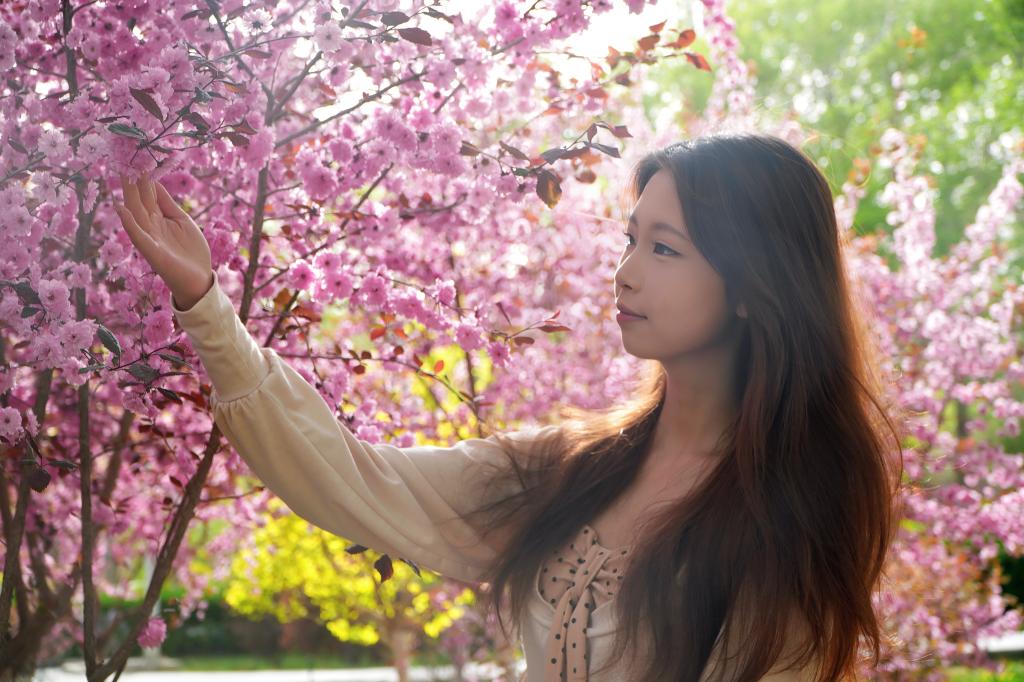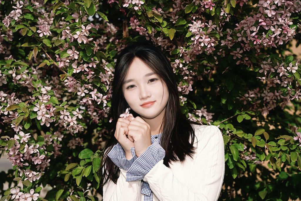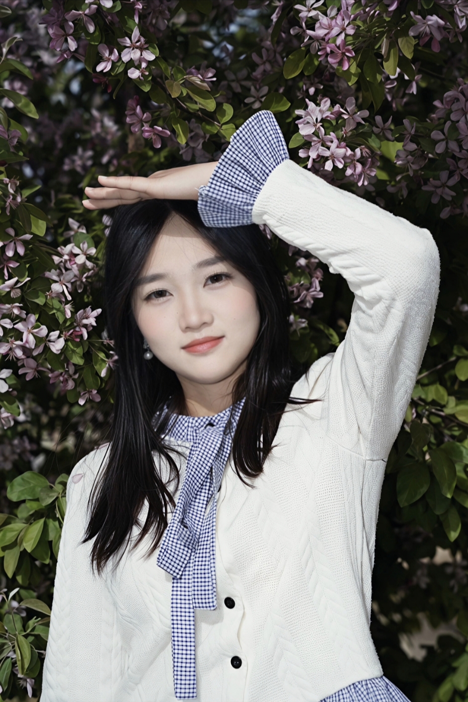 榆叶梅:站在花树旁,让满枝榆叶梅环绕身旁,微微侧身,抬手轻扶花枝,眼神温柔望向镜头,摄影师灵活拍摄,清晰呈现花瓣的细腻与人物的灵动,凸显花树的繁茂与青春气息。