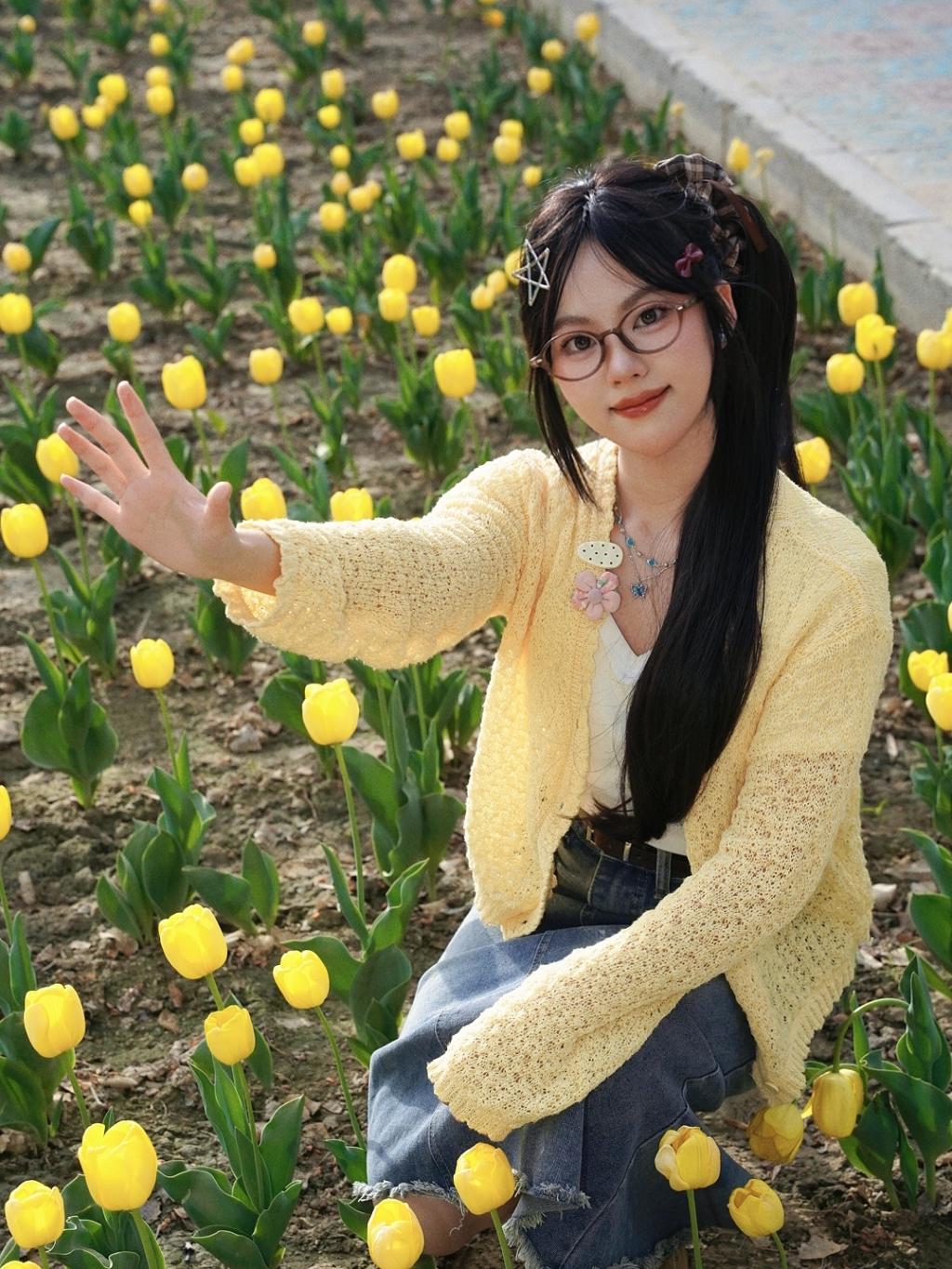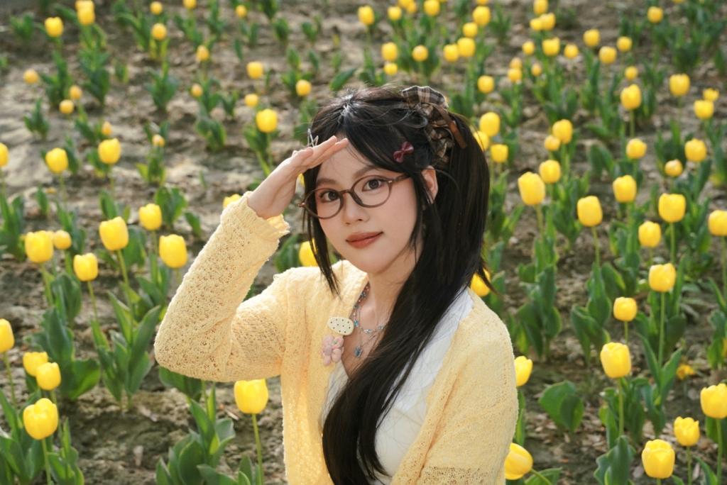 郁金香:站在郁金香花丛中,让盛放的郁金香作为背景铺满画面,微微侧身,一手轻捻一片郁金香花瓣,眼神温柔浅笑,摄影师灵活拍摄,突出花瓣的饱满色泽与人物的青春灵动,兼顾花景的艳丽与人物的温婉。
