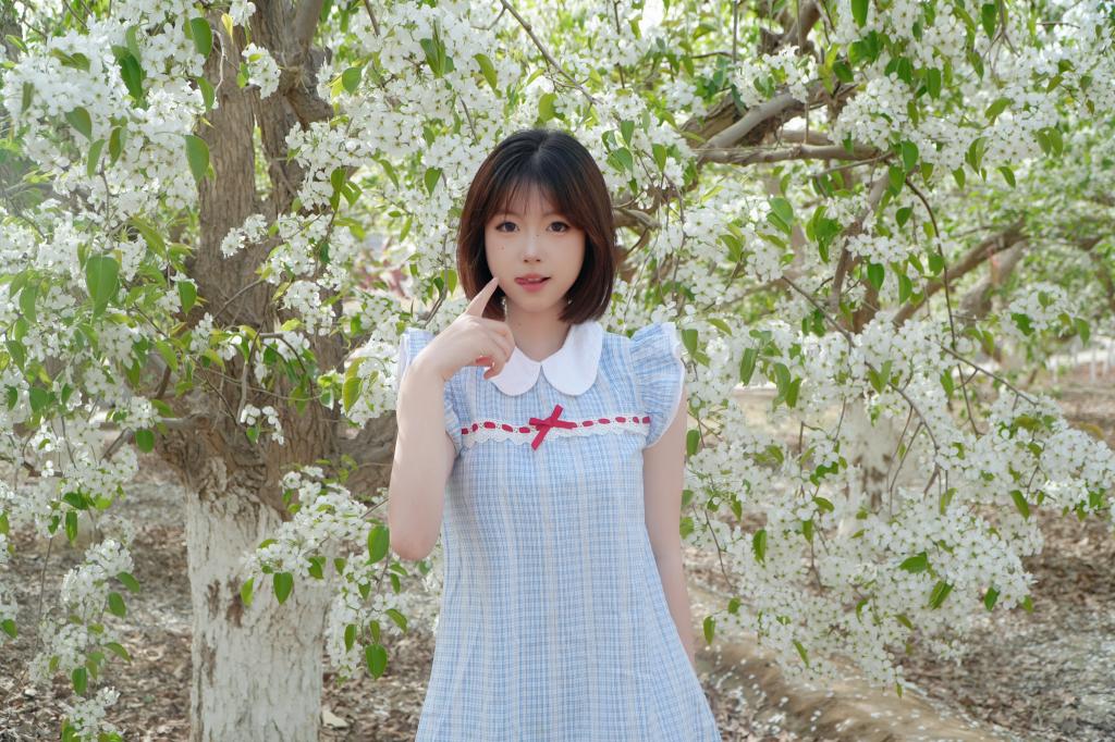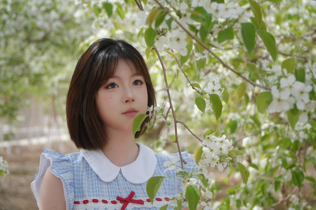 梨花:站在梨花树下,微微仰头,让素白花瓣轻落肩头,一手轻扶纤细枝桠,眼神柔和放空,摄影师灵活拍摄,清晰呈现花瓣的通透质感,避开杂乱背景,自带清冷又温柔的氛围感,凸显梨花的素净与人物的灵动。
