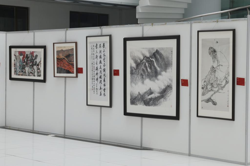 展览现场,一幅幅画作整齐陈列。宁静悠远的泼墨山水、栩栩如生的花鸟鱼虫、逼真传神的人物肖像……画作内容丰富、特点鲜明。