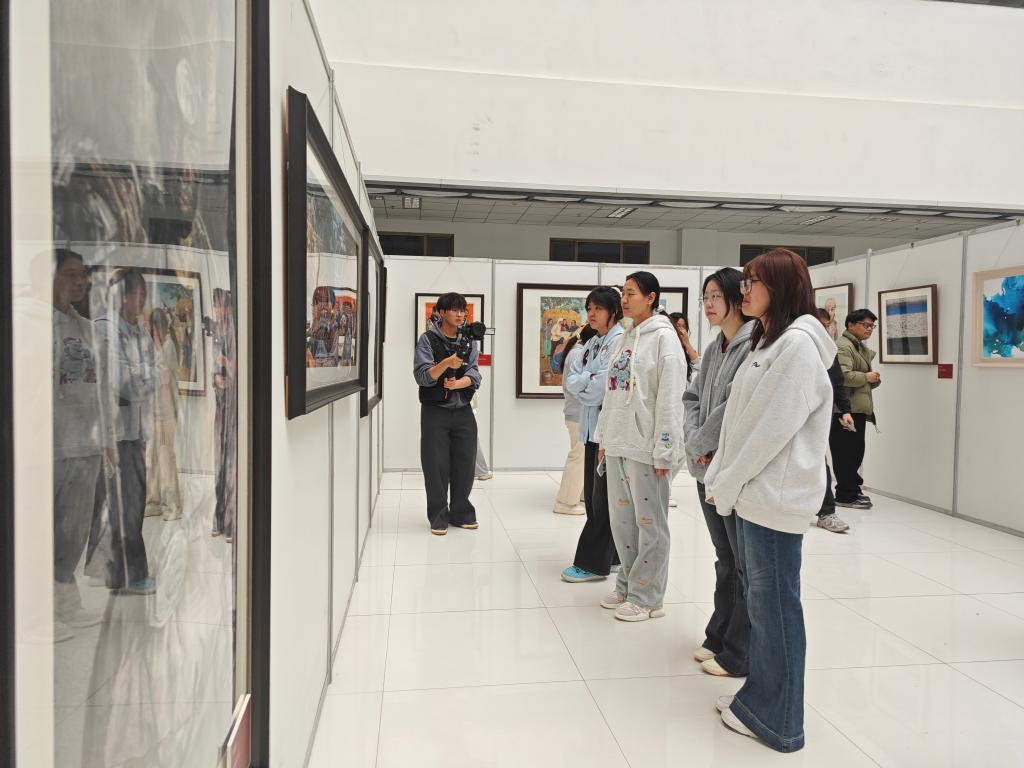 此次美术作品展由中央美术学院与塔里木共同主办,汇集七十余位艺术家经典佳作,涵盖国画、油画、版画等多个门类,旨在深入推进校园文化建设,推动文化润疆工作在学校落地生根。(文/孙佳宁 摄/翁敏晶 张博涵)