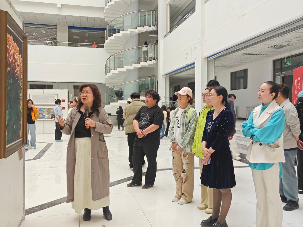 专业老师围绕作品主题、构图色彩、表达形式、传递情感等细节,为现场师生进行耐心讲解;师生们有序观展,不时在心仪的作品前驻足停留,细品画中意境、观摩创作技法,现场气氛浓厚。