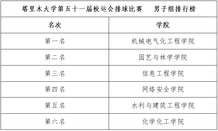 据悉,本次排球比赛作为塔里木大学第五十一届运动会分项赛,设置男子团体、女子团体两个项目,共有26支队伍,312人参赛,经过4轮激烈角逐,最终决出男子团体、女子团体冠军。