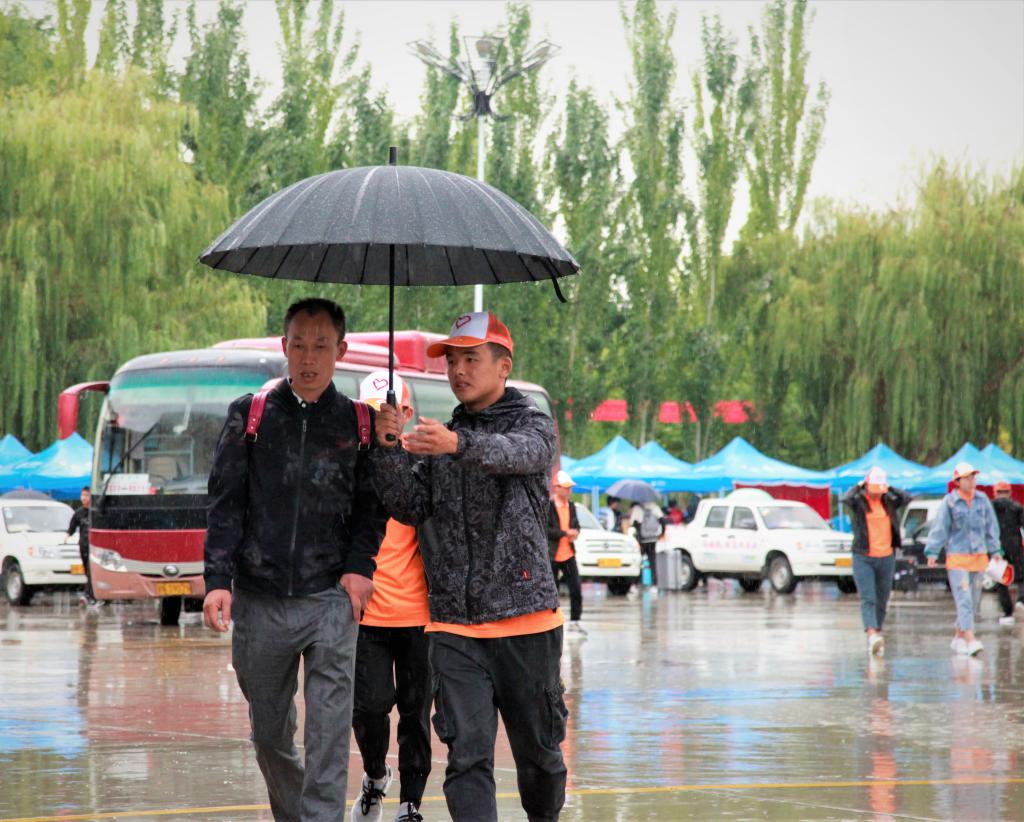 志愿者们身披雨衣,不停的穿梭在校园内,帮助新生搬运行李,积极的为新生介绍校园环境和学习、生活等方面经验,热情耐心地引导新生完成报到注册流程。