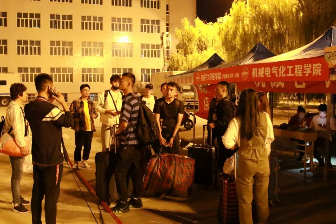 昨晚时值夜深,还有很多新生和家长陆陆续续来到学校。晚上值守的志愿者们,依然在用饱满的热情,服务于新生的报到工作。