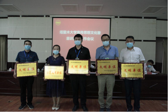 张传辉宣读了《关于命名表彰2019年学校示范文明单位和文明单位的通报》。与会校领导为2019年学校示范文明单位和文明单位获得者进行了颁奖。