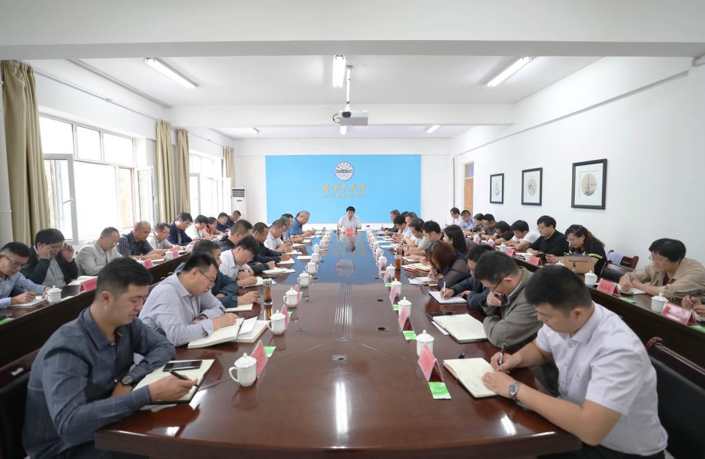 赵光辉在讲话中强调了庆祝中华人民共和国成立70周年的重大意义,对做好学校维护稳定工作提出明确要求。要求各基层党委(总支)、各部门和全体党员干部,一要进一步提高政治站位,增强“四个意识”、坚定“四个自信”、做到“两个维护”。进一步统一思想、提高认识,从战略和全局高度充分认识保持学校大局和谐稳定的重大意义,切实增强做好当前维护稳定工作的责任感使命感紧迫感,进一步强化措施、落实责任,为中华人民共和国成立70周年营造和谐稳定的社会环境。二要深入贯彻落实习近平总书记关于新疆工作的重要讲话和重要指示精神,贯彻落实新时代党的治疆方略特别是社会稳定和长治久安总目标,按照教育部、自治区党委和兵团党委关于维护稳定工作的部署要求,迅速行动周密安排,坚定坚决落实相关措施,警钟长鸣、警惕常在,保持严打高压态势,坚持综合施策、打组合拳,抓住关键、突出重点,落实相关措施,持续释放稳定红利,扎实做好维护稳定各项工作,确保学校大局持续和谐稳定。三要按照会议部署要求,切实加强组织领导,强化责任落实,坚持协调联动,构筑起维护校园稳定的铜墙铁壁、钢铁长城。各基层党委(总支)、各单位一把手要亲自抓、负总责。各部门要同心协力、齐抓共管,做到各司其职、各负其责、责任到人,从严从实抓好各项相关措施的落实。要加强督导检查和责任落实追究,始终把责任放在心上、扛在肩上、抓在手上、落实在行动上,层层压实责任、落实措施,以铁一般的决心、铁一般的意志、铁一般的纪律、铁一般的担当,形成维护校园和谐稳定的强大合力,全力确保学校大局持续和谐稳定。(文/杨宝仁 摄/杜京京)