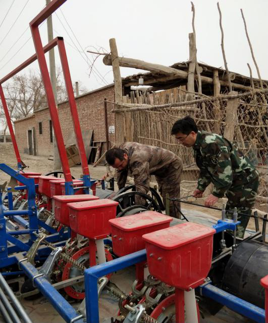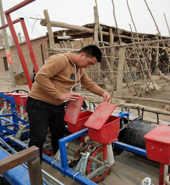 塔里木大学驻十一团七连“访惠聚”工作队科技特派员团队,一手抓疫情,一手抓农业生产,开展送科技、送科学、送肥料等科技服务,助力职工群众增产增收。3月13日,工作队队长杨保求带领科技特派员团队成员及工作队队员,来到七连职工杨德亮的家里,了解春耕春播的准备情况,协助维修调整播种机和犁地机等机械。