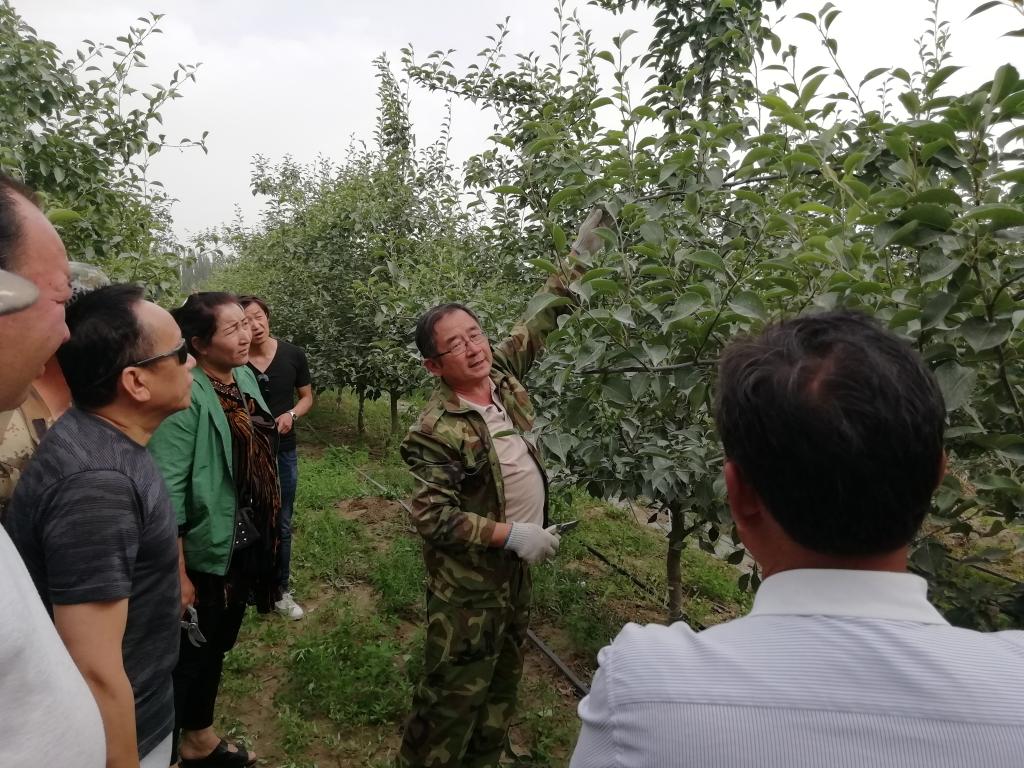 两个小时的现场教学,张教授不仅在树下,还搭梯爬树,亲自为职工示范“打顶”、“扭枝”、“抹芽”等具体操作,是名副其实的“上树教授”。除了讲解,张教授还让职工们上手实践,并及时纠正,让职工们真正掌握技术,学会田管本领。除此之外,张教授还指导了已完成修剪和田管的职工梨树地,将下一步要注意的重点工作向他们一一叮嘱。