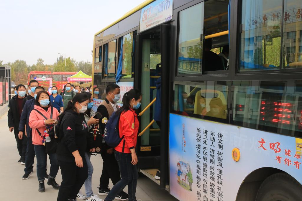 10月8日,为了让家长们亲眼、亲身了解塔大,学校特地为新生家长们开通了“观光专线”,分批次组织家长乘坐观光车有序参观校园,并在每台校车上配备“导游”全程讲解。