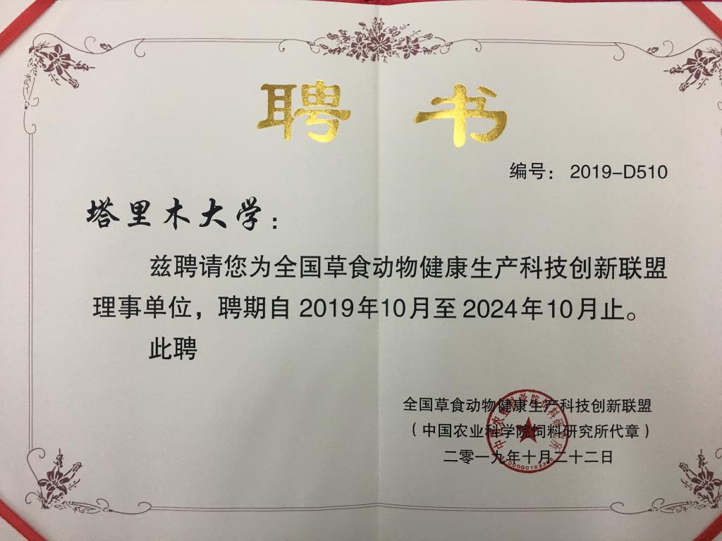 全国草食动物健康生产科技创新联盟(以下称“联盟”)2019年11月23日在北京成立,我校作为理事单位加入“联盟”。