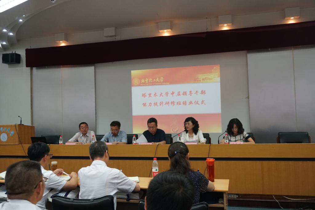 7月14日下午,塔里木大学中层领导干部能力提升研修班结业仪式举行。北京化工大学党委副书记甘志华,塔里木大学党委常委、副校长张爱萍,塔里木大学党委组织部部长张理,北京化工大学党委组织部常务副部长崔春花,北京化工大学国内合作交流处处长何雨骏出席开班仪式。仪式由崔春花主持,在北京化工大学科学会堂举行。