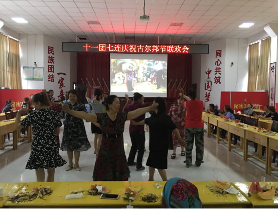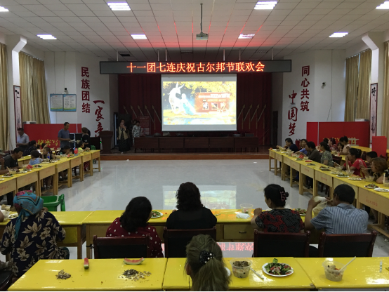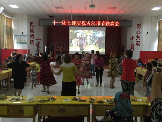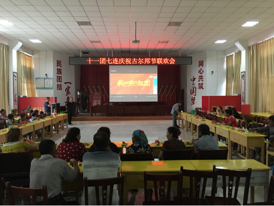 7月18日下午,十一团七连党群活动中心热闹非凡,连部大院成了欢乐的海洋。在古尔邦节到来之际,访惠聚工作队和七连“两委”特别为连队职工组织了一场联欢活动。