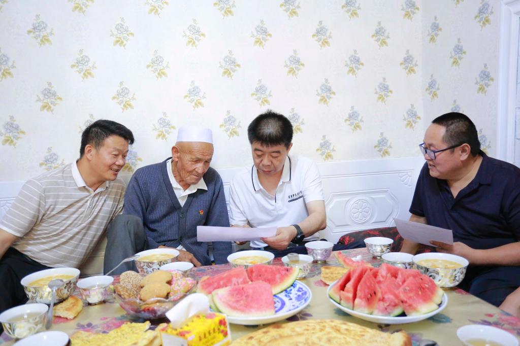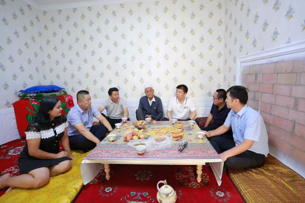 在阿依古扎丽·艾尼瓦尔的家里,赵光辉与家长、学生亲切交流,详细了解学生家庭生活情况,仔细询问目前家庭存在的困难,深入了解学生在校期间的学习成绩。赵光辉勉励学生要坚定理想信念,刻苦学习,继承和发扬胡杨精神,争做新时代有为青年。