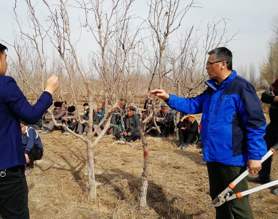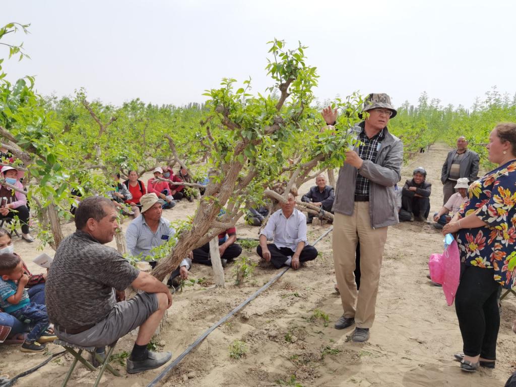 王新建教授作为自治区自然科学专家、兵团科技特派员,初心不改,发扬胡杨精神,长期坚守在新疆园艺生产一线,把科技的种子播撒在南疆大地上,在林果科技服务的34年里坚持助农扶贫,南疆各边远地区都留下了他的足迹。他服务的果农涉及南疆阿克苏、和田、喀什的8个县,培训的红枣种植户涵盖哈密和南疆5个师15个团场,培训人数达到3万7千多人次,培养青年科技特派员150余名,发放技术手册1万余份。