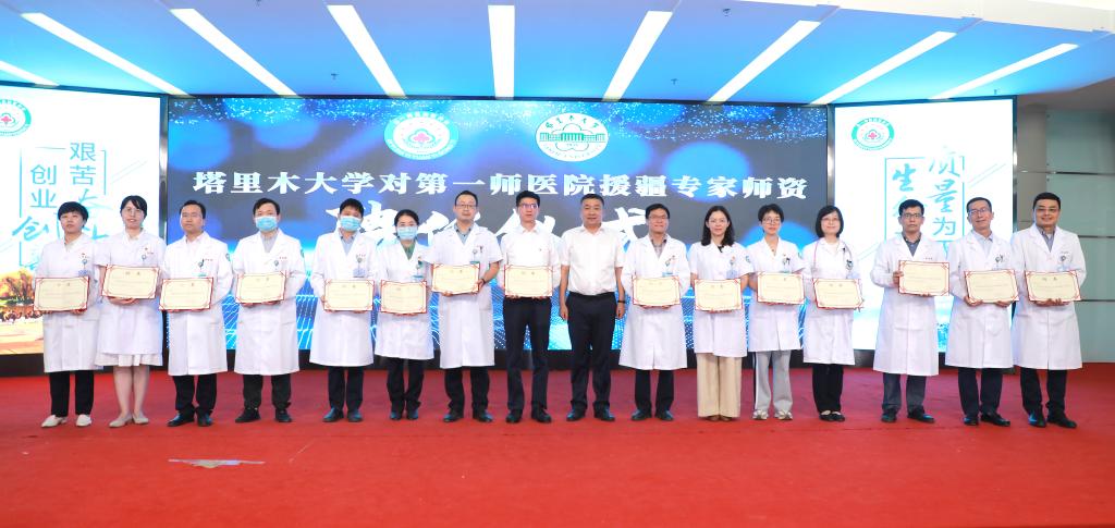 9月7日下午,塔里木大学援疆专家聘任仪式在第一师医院举行。塔里木大学党委常委、副校长石长青出席,第一师医院党委副书记、院长陈大进,党委委员、副院长吴燕,以及我校医学院、人事处相关领导,全体援疆专家、医学院教职工参加。仪式在第一师医院行政楼12楼会议室举行。