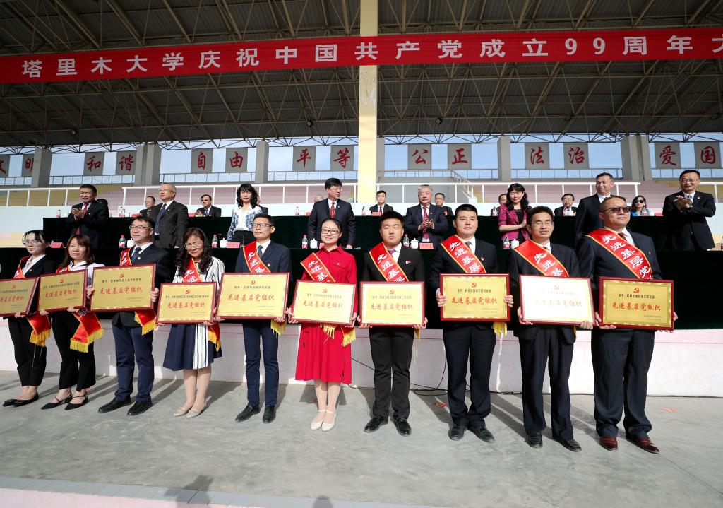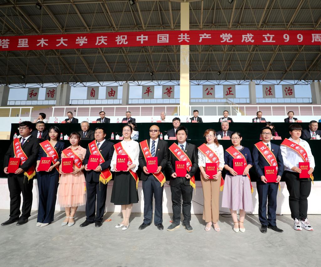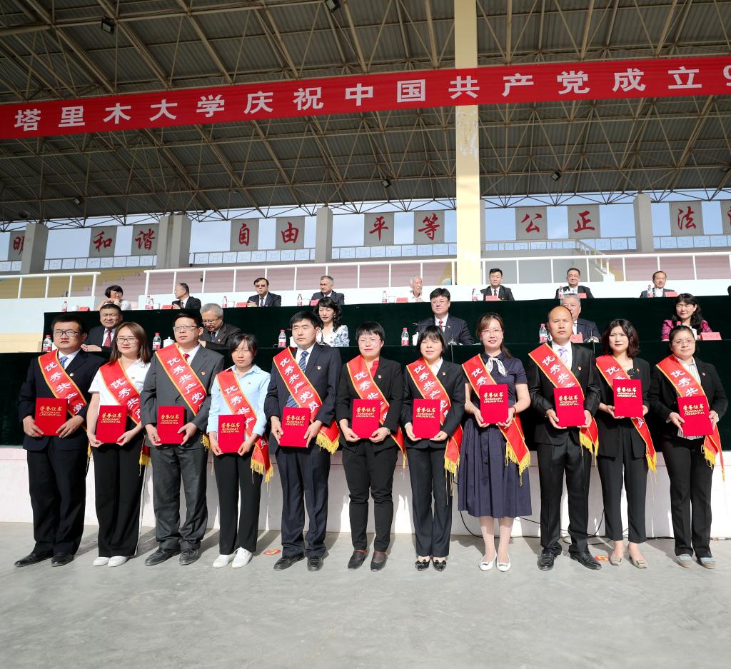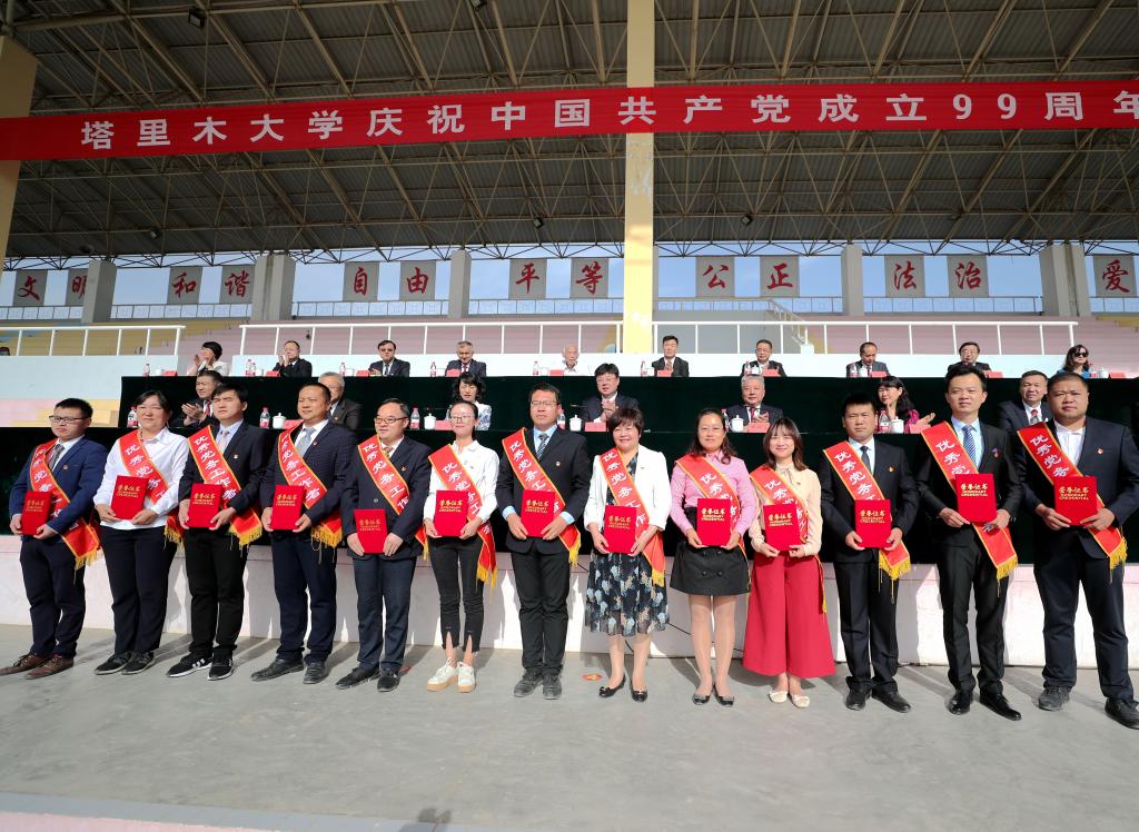 校领导为受到表彰的优秀共产党员、优秀党务工作者和先进基层党组织颁奖。