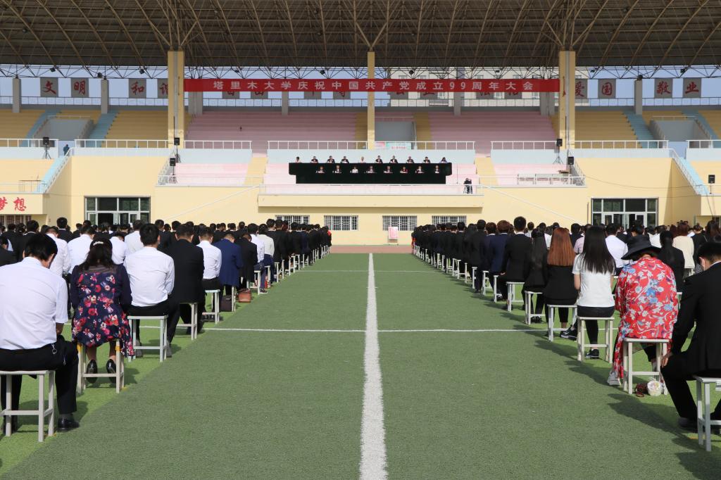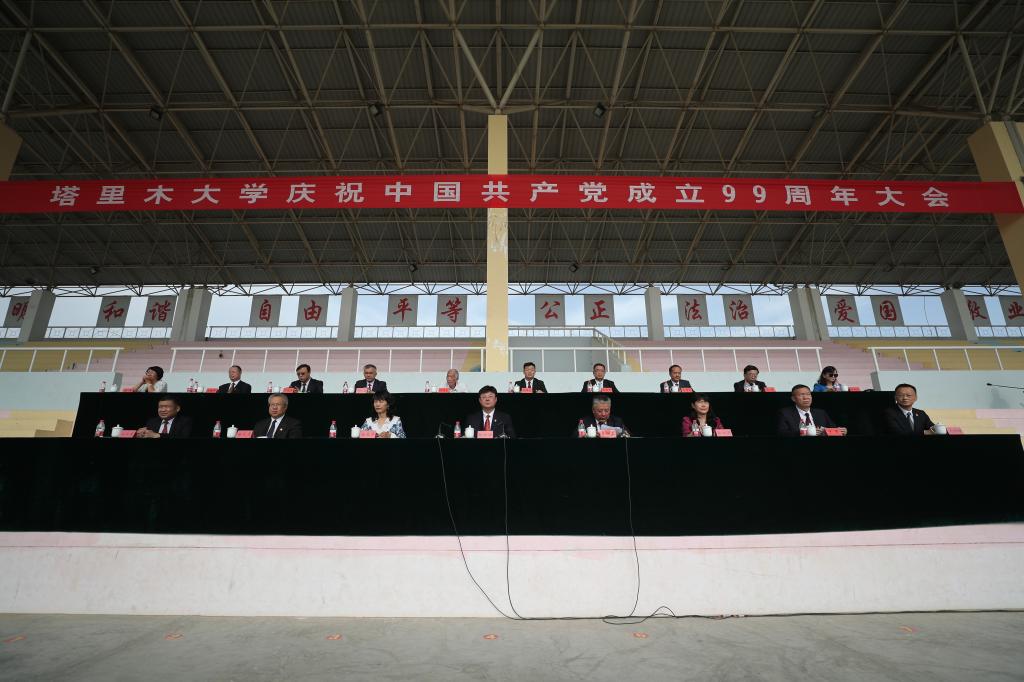 张传辉代表学校向为学校建设发展付出心血和汗水的老党员、优秀共产党员和先进党组织致以崇高的敬意和诚挚的感谢。他指出,一代代塔大人坚持以国家利益为重,凭借着对党的无限忠诚、凭借着对党的教育事业的无限热爱,始终扎根南疆大地办教育,积极克服地处偏远、条件艰苦等各种困难,取得了学校从无到有、从小到大的历史性发展成就。