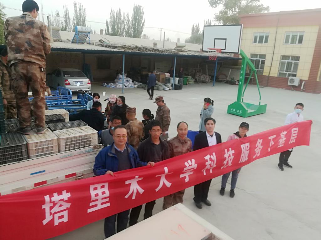 10月18日,动物科学学院任道全、刘俊峰、王惠娥、吾买尔江·艾孜木再次来到十一团六连,为20户职工群众提供了1500只鸡苗,价值35000元,并开展麻黄鸡养殖技术专题培训。任道全就麻黄鸡养殖的成鸡售卖、室温调整、疾病预防、饲料选择等知识,为职工群众上了一堂生动的养殖技术课。
