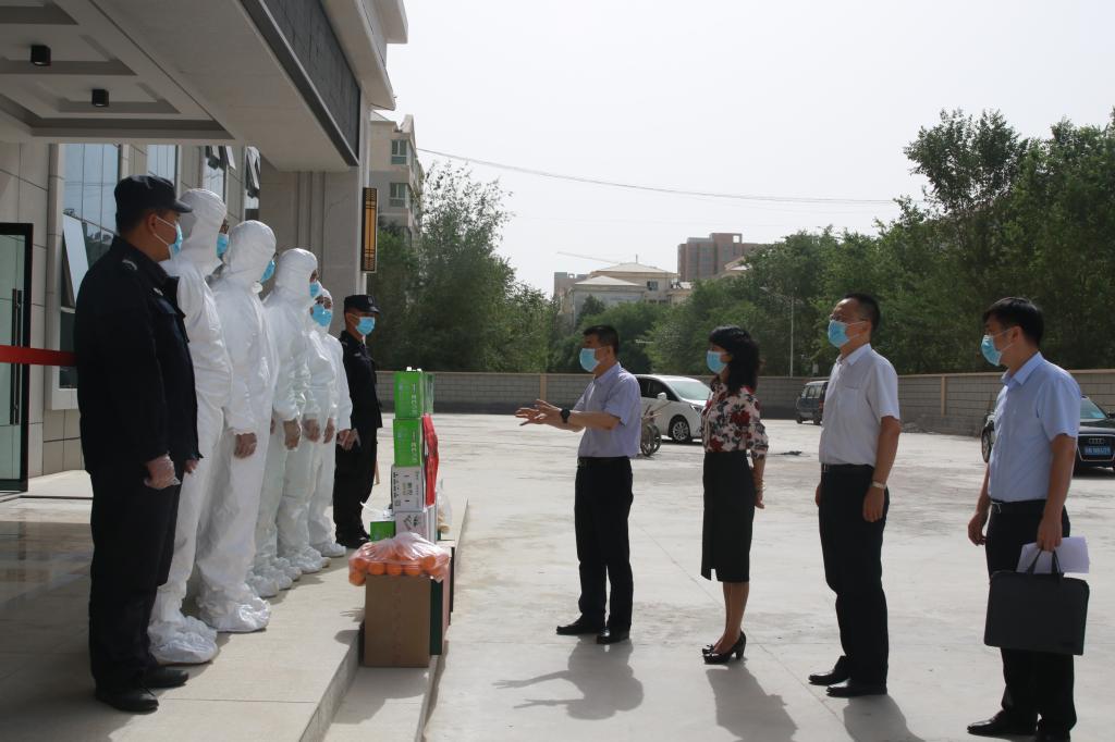 5月27日上午,党委书记赵光辉,党委副书记、校长张传辉,党委副书记张爱萍,副校长张利莉,党委常委、副校长石长青,党委常委、组织部部长马智群,分为两组来到各有关宾馆,看望慰问一线工作人员、警务人员和医务人员。