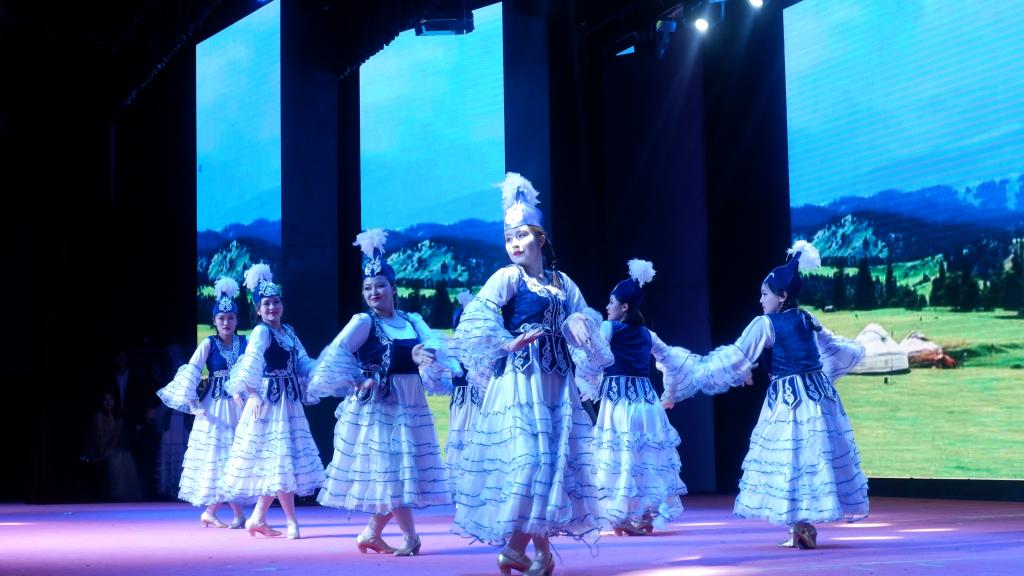 开场舞《万疆》,突出中国元素,通过现代舞的柔美,表达了对实现中国梦的坚定信心与决心。抗疫街舞《平凡之路》,通过歌舞律动,讲述了年青一代面对抗疫,挺身而出、众志成城的家国情怀。舞蹈串烧《携手相融》,将民族舞融入中华传统戏曲表演,各族师生同台演出,将学院各民族共同团结奋斗、共同繁荣发展的生动景象展现的淋漓尽致,赢得观众热烈掌声。
