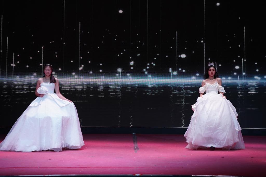 把服装与服饰设计专业师生的作品融入晚会,时装秀《我们来了》,通过时尚大胆的套装、融入民族元素的长裙、精美的婚纱秀,为观众展现了人文底蕴和自然之美。《我爱你中国》古筝、萨克斯、手风琴、钢琴、马头琴、吉他等乐器演奏,展现了学前教育专业学生的专业素养,表达了人文学子对伟大祖国的美好祝愿。