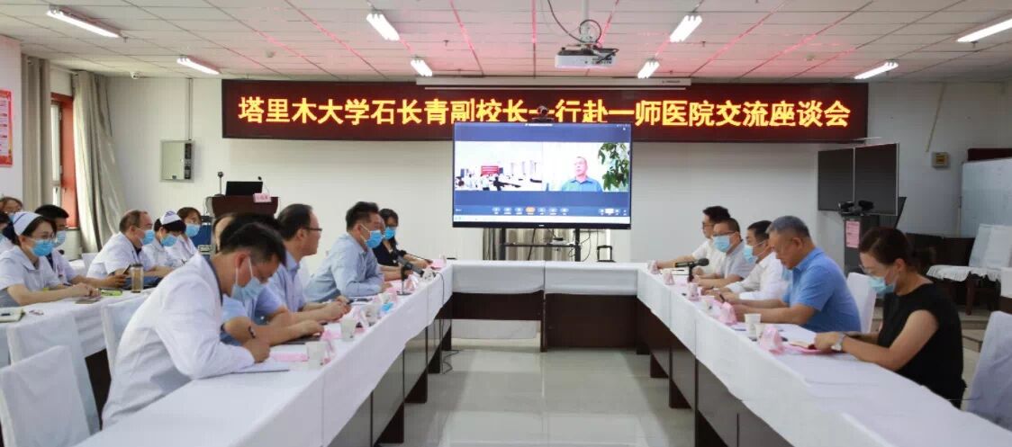 石长青一行人来到第一师医院,与医院全体领导班子成员及相关职能部门负责人深入座谈交流。会上,石长青对第一师医院的综合实力给予了充分肯定,强调第一师医院划转为塔里木大学直附属医院,既有利于学校补齐学科短板,加快推进医学教学科研工作,也有利于医院提升医疗服务水平,实现共赢。随后石长青一行实地参观了第一师医院临床技能考核中心,对临床技能考核中心模拟实验室和实操训练室的合理布局、规范管理、先进设施、教学设备配备的多样性加以赞赏。