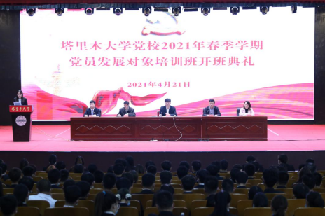 4月21日下午,塔里木大学党校2021年春季学期党员发展对象培训班正式开班。党委副书记、校长张传辉出席并讲话,党委学生工作部、党委研究生工作部、团委负责同志及625名党员发展对象参加开班典礼,典礼由机关党委书记、党委组织部常务副部长张伟信主持,在行政楼B座报告厅举行。