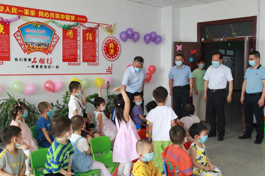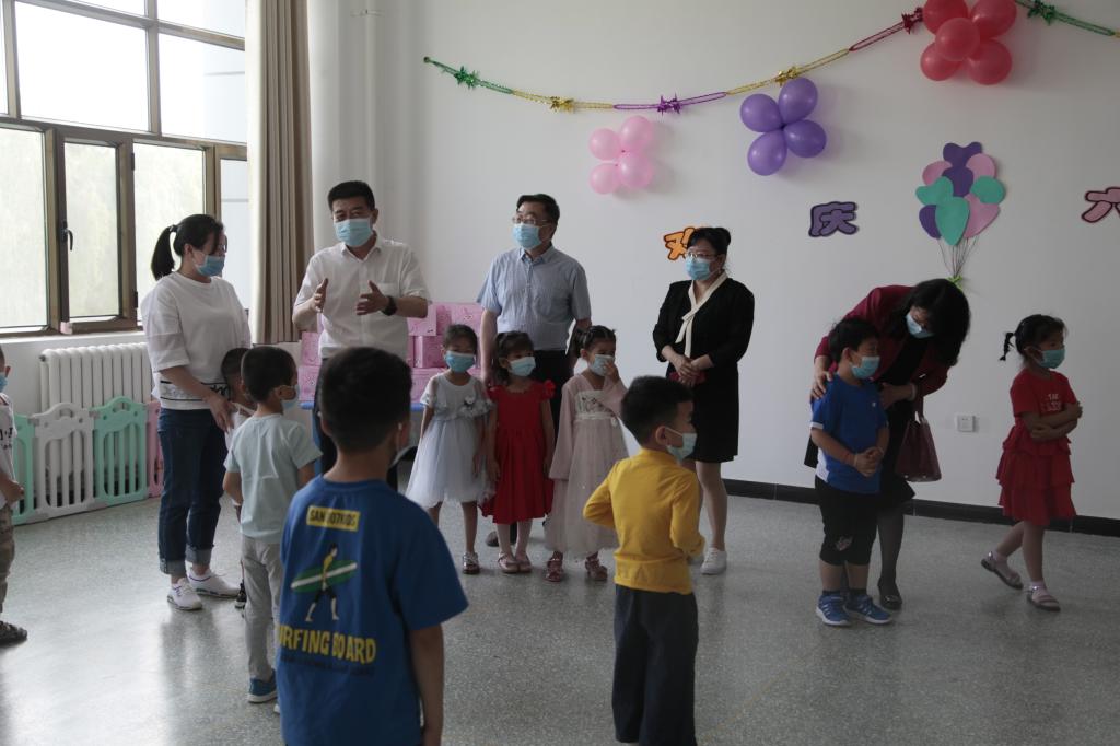 “六一”国际儿童节之际,6月1日上午,党委书记赵光辉,党委副书记、纪委书记单洪山,党委常委、副校长卢光志,副校长张利莉分成两组走访看望因新冠肺炎疫情影响尚未复园复课需要看护的幼儿、慰问在9个看护点照看幼儿的幼儿园教职员工,并为小朋友们和幼儿园教职员工送去节日祝贺。