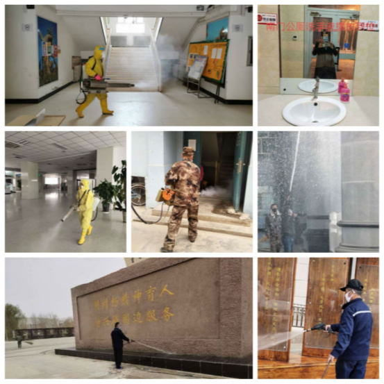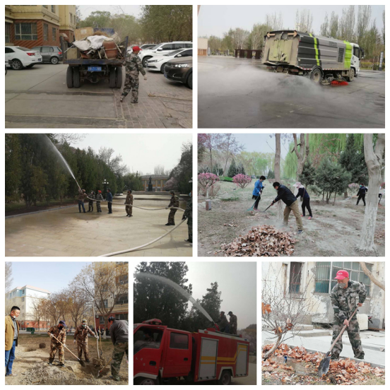 截止目前,已消杀毒110余处,清理落叶340余车,洒水180吨,摆放洗手液150余瓶,移植乔灌木500余株,摆放废弃口罩收集容器30多个。(文/庞竟公 罗雨薇 摄/庞竟公 杨生强 王贵成 来立新 赵娜)