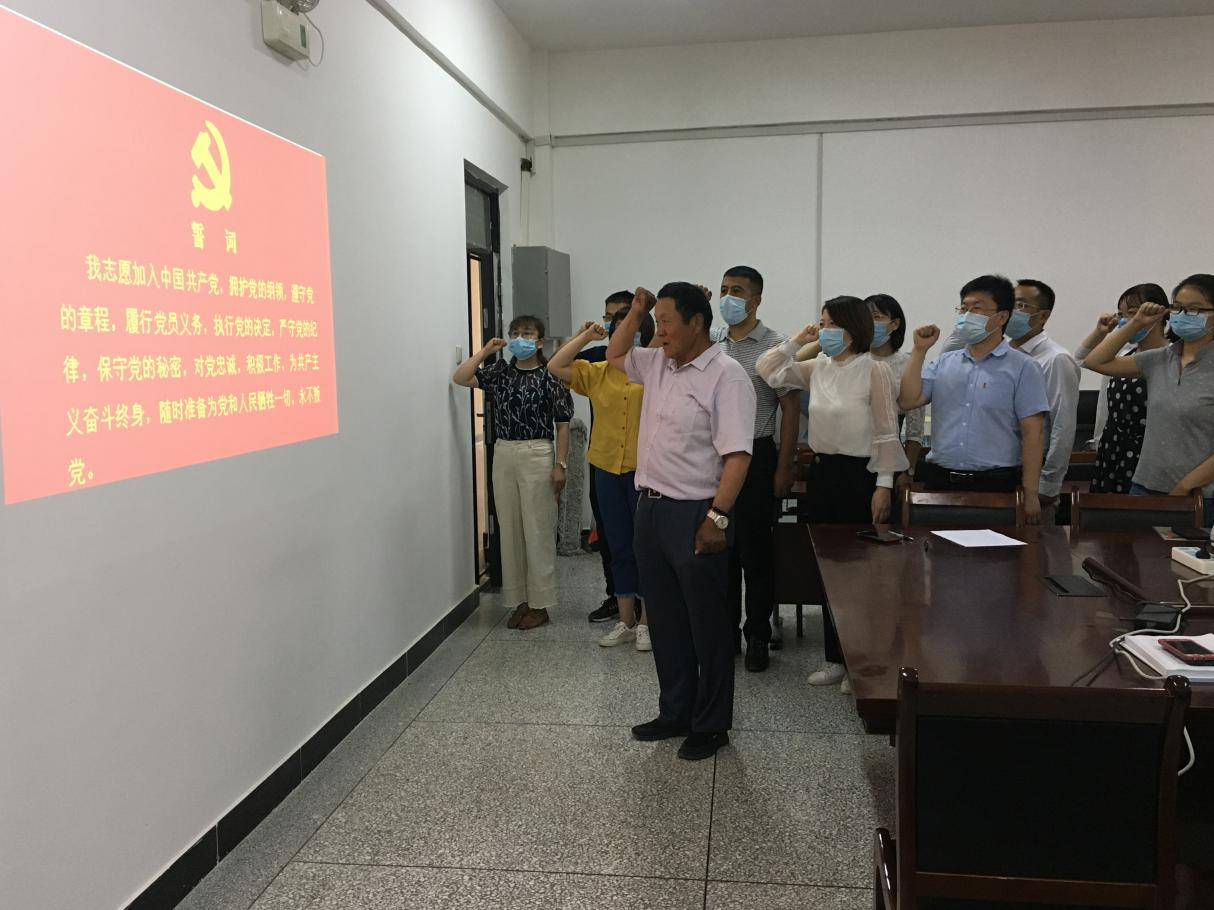 郭喜福带领支部党员重温入党誓词,“坚定而响亮的誓词响彻整个会场。