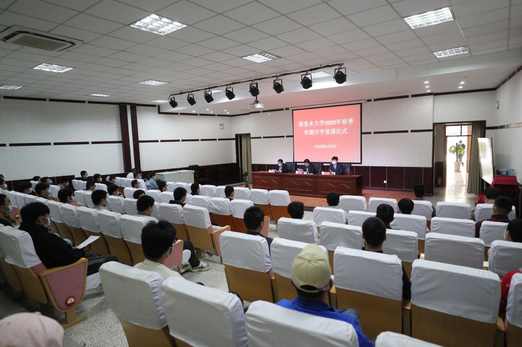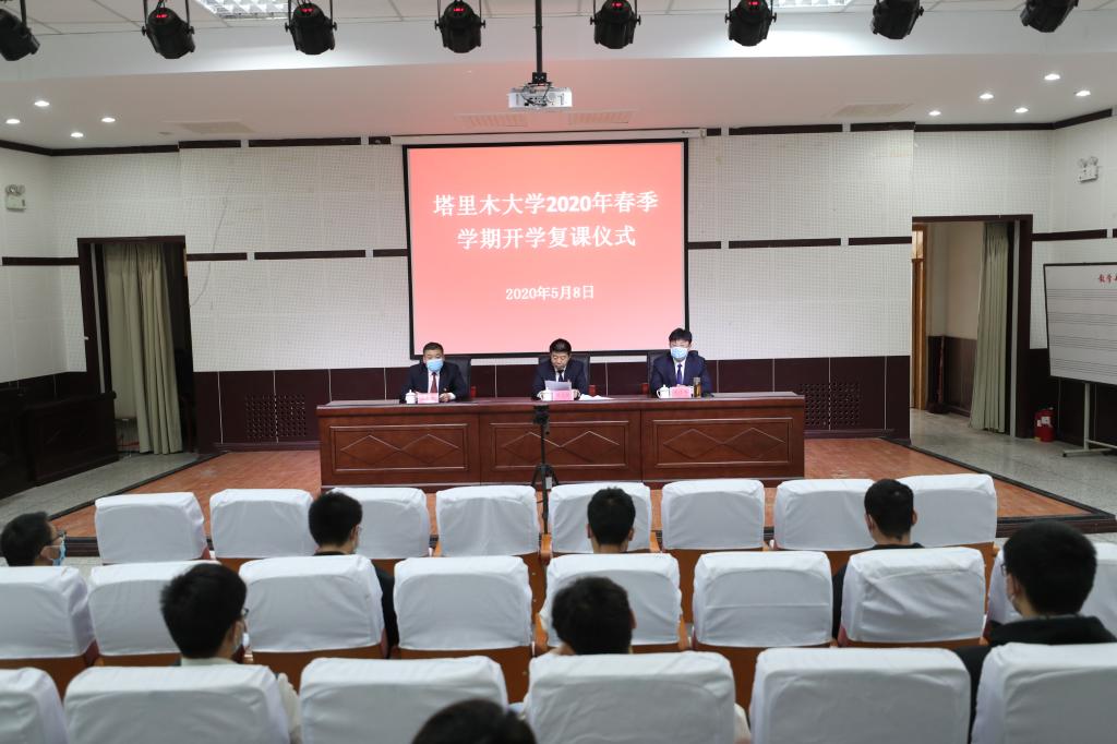 5月8日上午,塔里木大学采取线上为主、线下为辅的特殊方式,举行2020年春季学期开学复课仪式。党委书记赵光辉作开学复课动员讲话。党委副书记、校长张传辉,党委常委、副校长石长青出席。人文院疆外返校学生代表参加。仪式由石长青主持,在行政楼B座117室举行。
