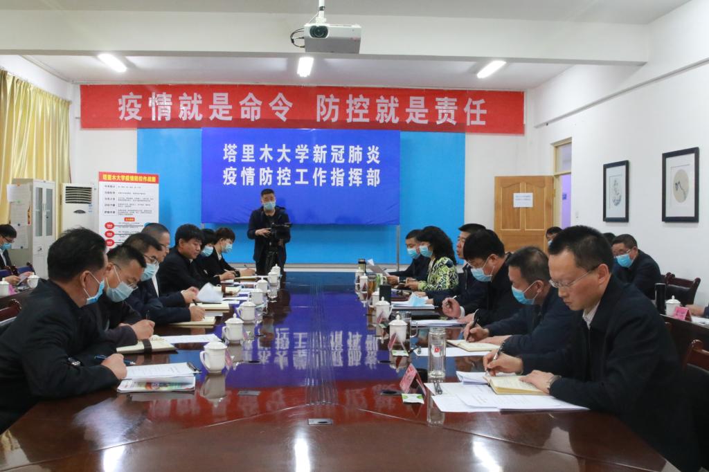 会上,赵光辉介绍了学校贯彻落实自治区党委、兵团党委和师市党委关于高校返校复课工作的部署要求和落实推进情况。赵光辉指出,师市是塔大的坚强后盾,有兵团党委、师市党委的关心和支持,塔大有信心做好返校复课和疫情防控各项工作,会采取更加果断、更有力有序、更科学周密措施,落实落细联防联控机制,筑牢防疫抗疫的铜墙铁壁,答好这次考卷,打赢这场硬仗。