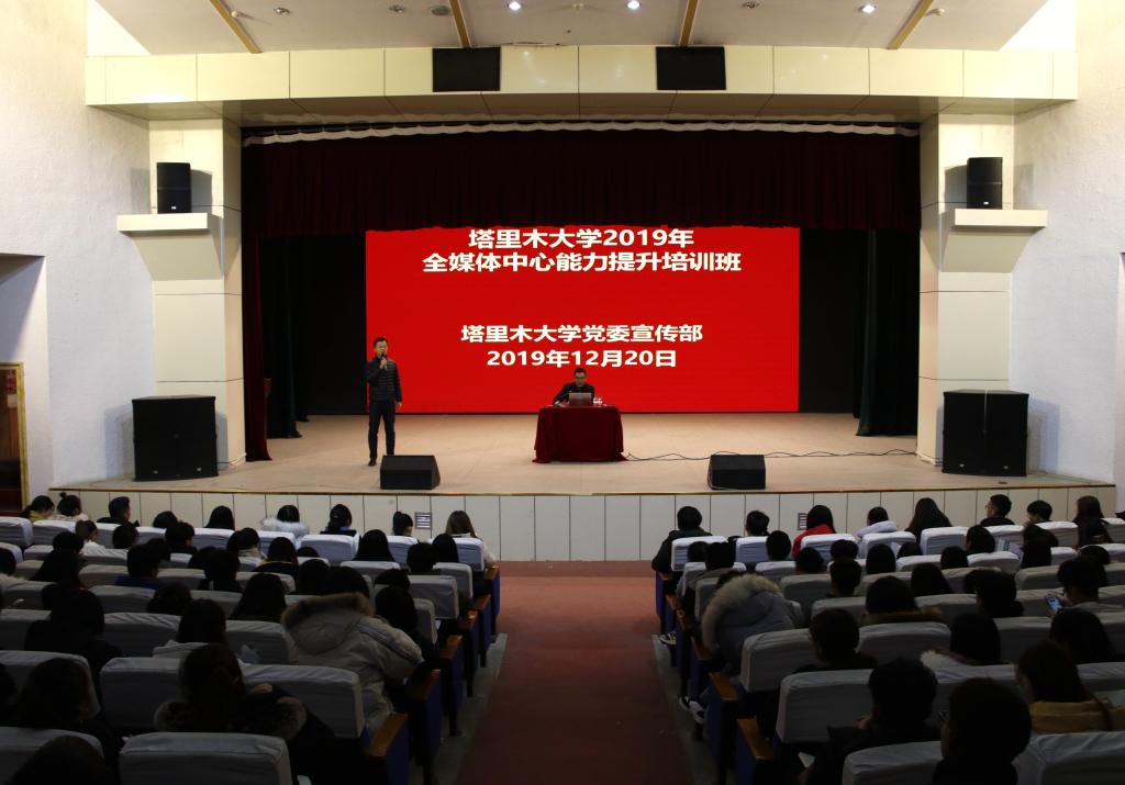 12月20日晚,塔里木大学全媒体中心能力提升培训班第三讲在大学生活动中心举行。党委宣传部副部长杨宝仁为全媒体中心作了“如何写好校园新闻”的专题培训。