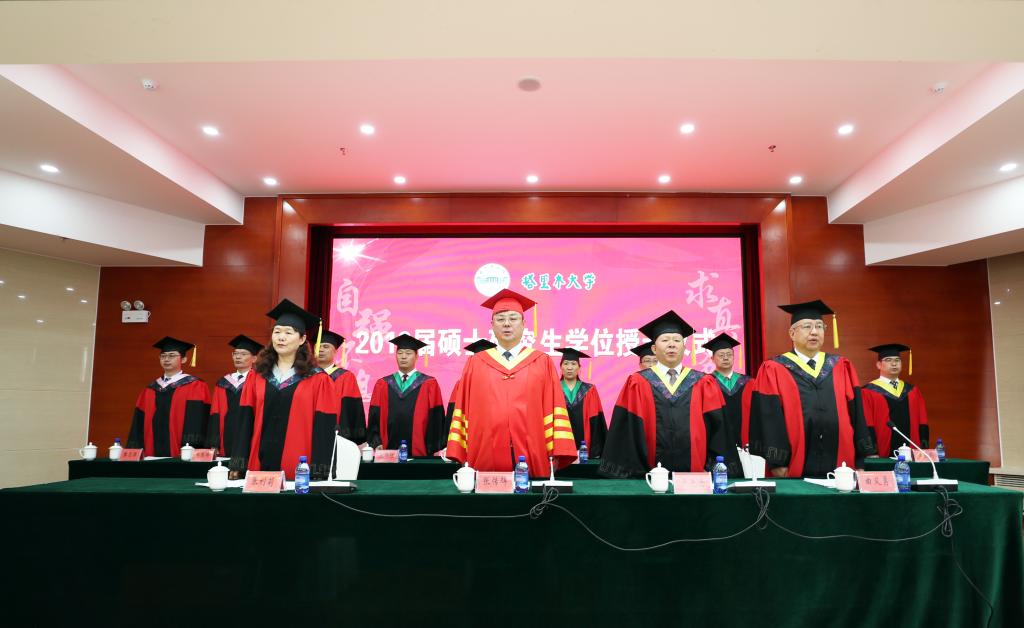 党委副书记、校长张传辉,党委常委、副校长卢光志,副校长张利莉,党委常委、副校长曲义勇,以及相关部门、各院领导出席仪式。2019届全体硕士研究生及导师参加仪式。