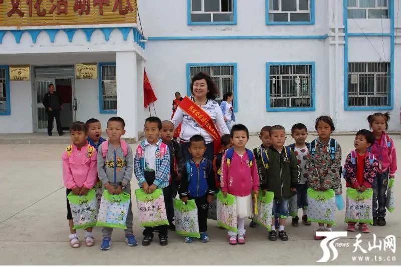 吉木萨尔县吉木萨尔镇满城路社区干部巴哈义古丽·尼合买提(中)。图为巴哈义古丽·尼合买提提供