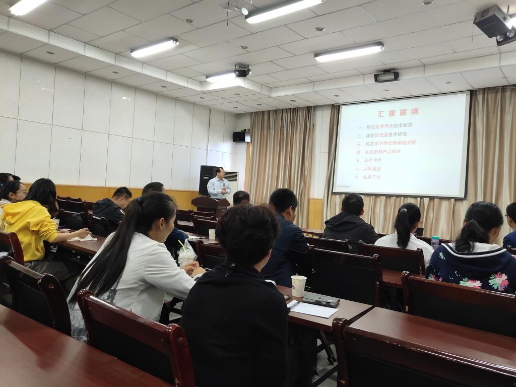 5月10日上午,中棉所栽培室副主任庞朝友研究员来校学术交流,在植科院四楼多功能厅举行专场学术报告会。植科院相关专业教师、全体研究生及农学专业大四本科生听取了学术报告。